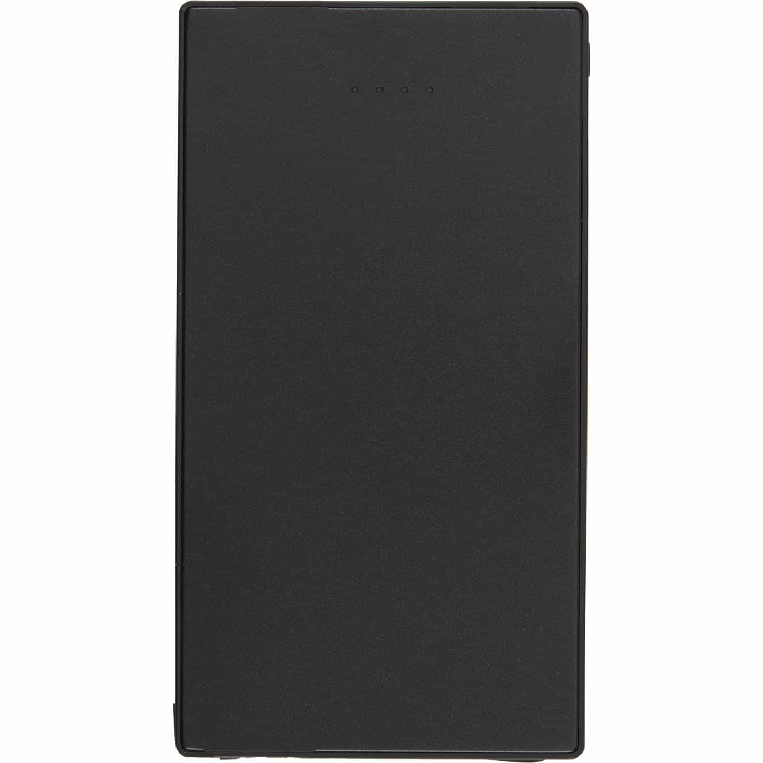 The 4000 mAh Cable Keeper Power Bank with Type-C Tip features a 4,000 mAh/14.8Wh rechargeable lithium polymer battery, an integrated 2.3-inch cable with 2A Type-C tip, a 2A Type-C input port, and a 2A USB-A output port. Super thin casing for fitting right into pocket. Includes a 19.6-inch USB-A to Type-C charging cable. Power banks are permitted in carry-on luggage only, and at the discretion of TSA agents. Please charge the power bank before initial use. 4.80″ D x 2.64″ W x 0.26″ H