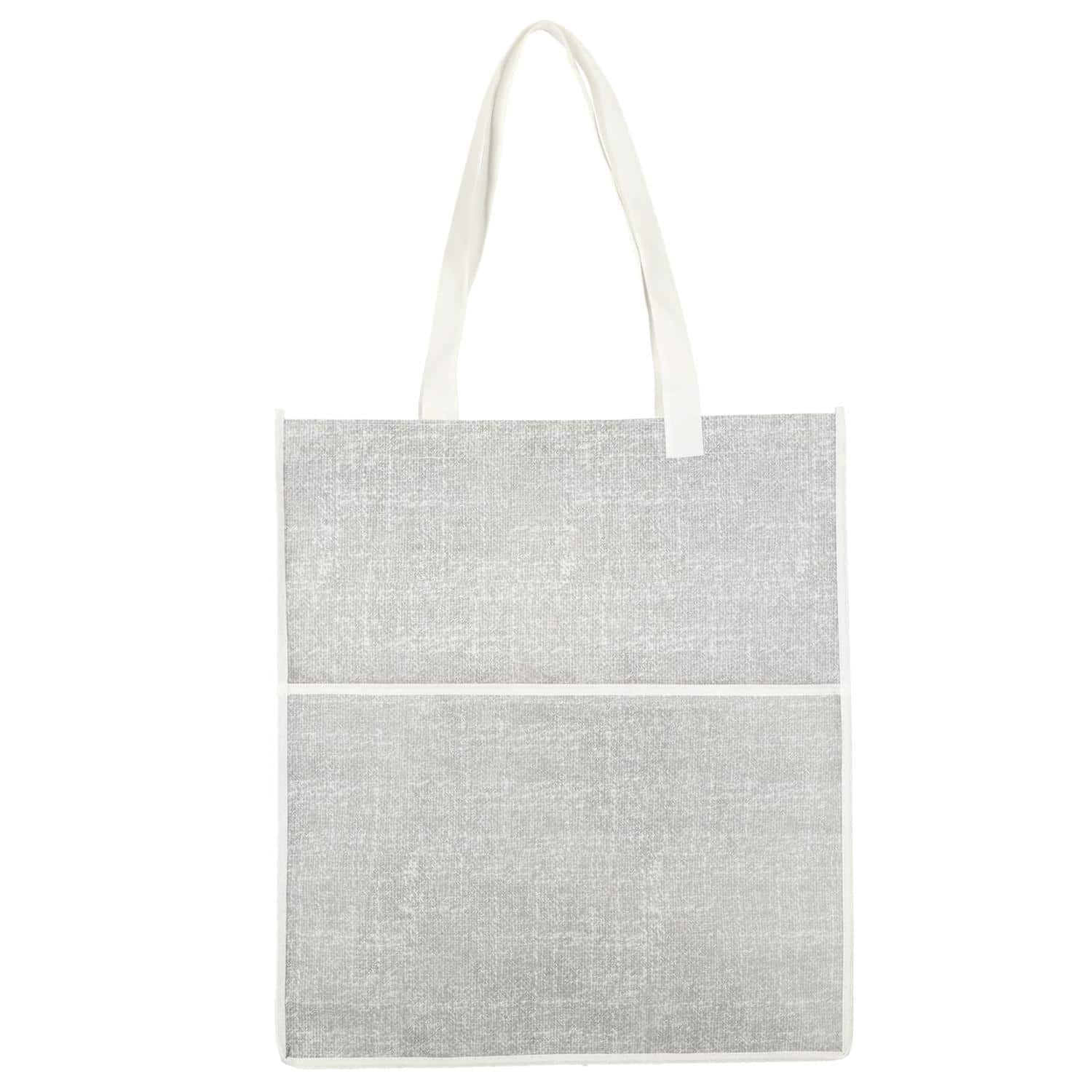 Embrace the natural charm of the Apollo Recycled Non-Woven Convention Tote, a unique take on non-woven bags. This large tote, adorned with a natural print, is perfect for carrying all your essentials. Boasting a spacious open compartment and an additional front pocket for extra storage, this versatile tote is designed to meet all your needs. 3.00″ D x 16.50″ W x 14.80″ H