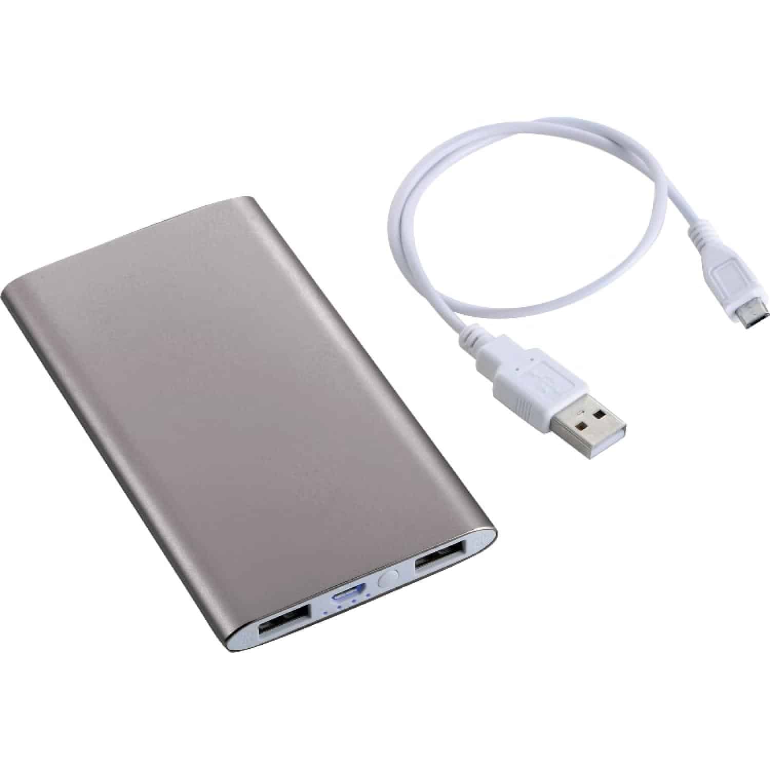 The Bullet Sleek Aluminum 4000 mAh Power Bank has a rechargeable lithium polymer Grade A battery for charging smartphones, tablets and mobile devices with a total output of 5V/2A. The power bank’s dual outputs allow you to charge two devices simultaneously. It also includes a battery check button that displays the remaining battery life. The reusable power bank charges via an included USB-A-to-Micro cable, which can recharge the battery backup or be used to charge devices with a micro-USB input. Power banks are permitted in carry-on luggage only, and at the discretion of TSA agents. Please charge power bank before initial use. Comes packaged in a FSC®-certified premium gift box. 4.75″ D x 2.63″ W x 0.38″ H